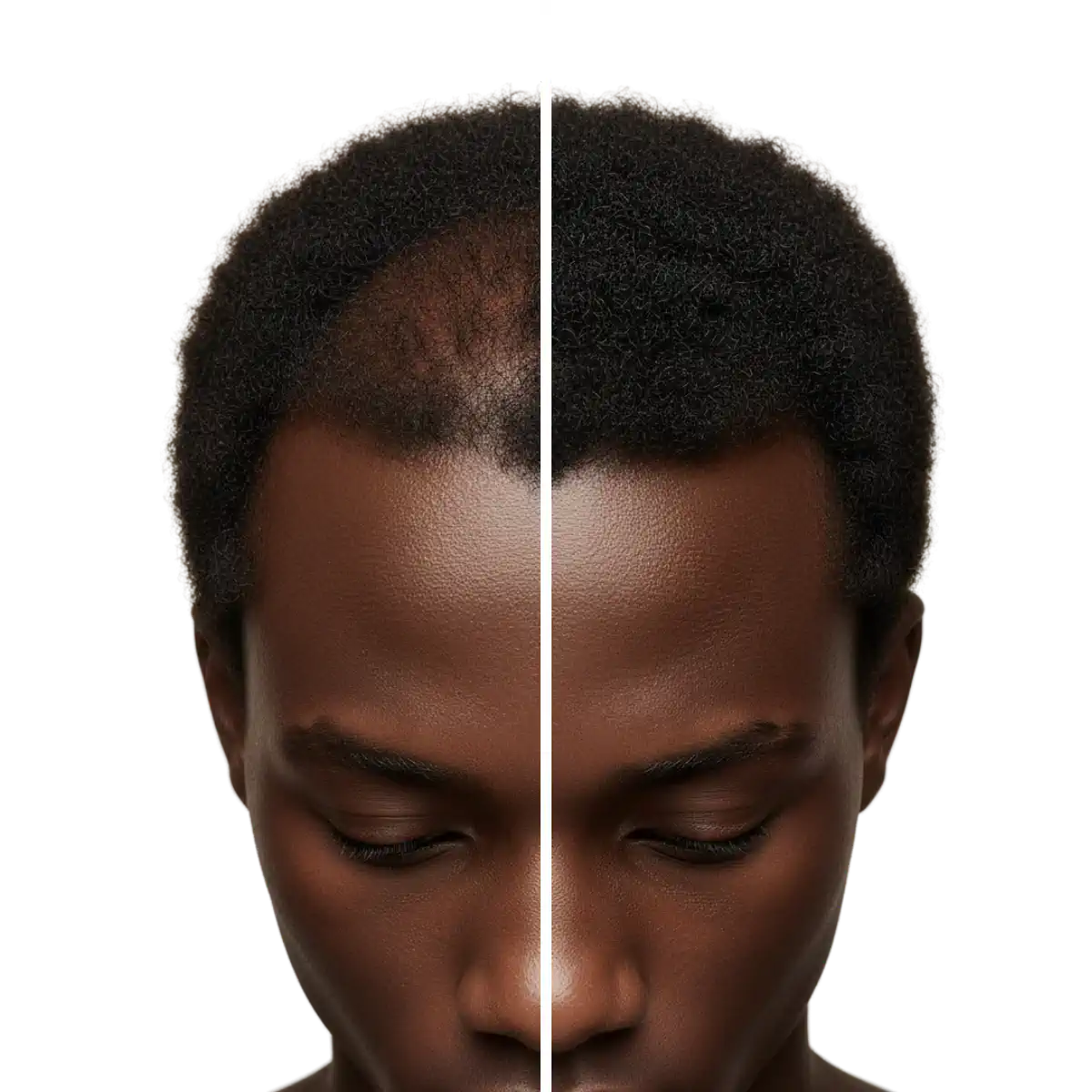 J’avais la ligne frontale clairsemée. Après l’application, mes cheveux sont beaucoup plus fournis.