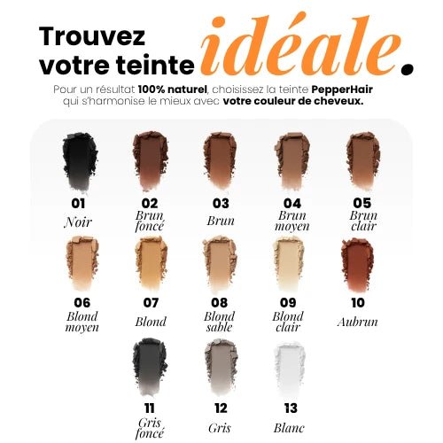 En quelques secondes, la poudre comble les zones clairsemées et redonne l’apparence d’une chevelure dense et homogène.