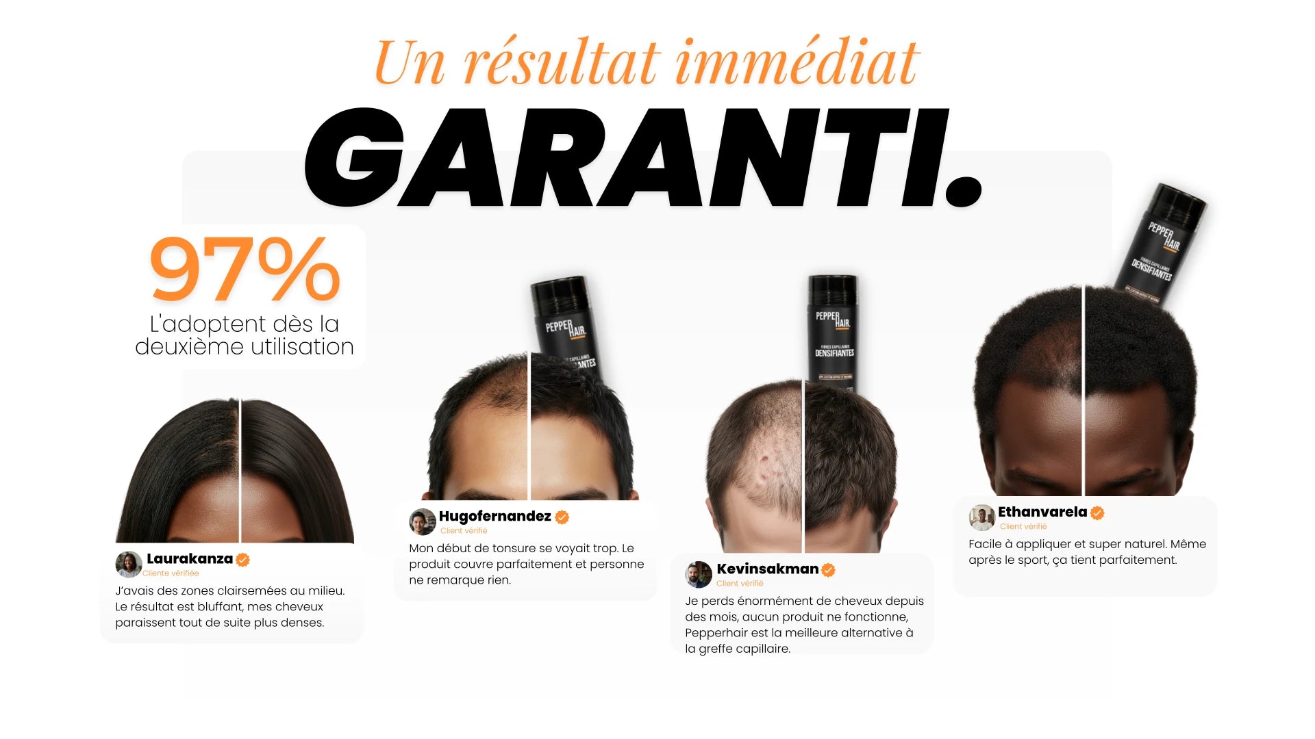 « Je suis passé par des lotions, des sprays, rien n’a marché. Pepperhair, c’est la première fois que je vois un vrai résultat immédiat. »